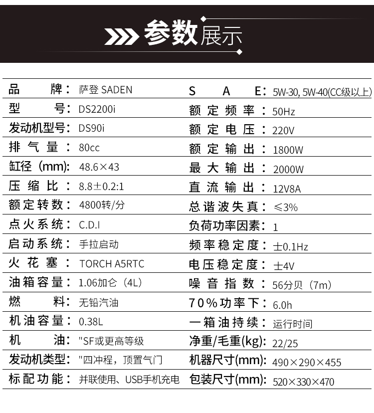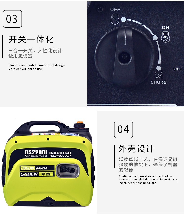 薩登2kw小型靜音汽油發電機DS2200i